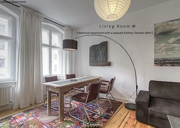 Raja Jooseppi Apartments lägenhet ligger 350 meter från tunnelbanestationen Bernauer Strasses. Här finns bankomat och förvaringsboxar. Berlin Brandenburg flygplats kan nås på 38 minuters bilresa från boendet.